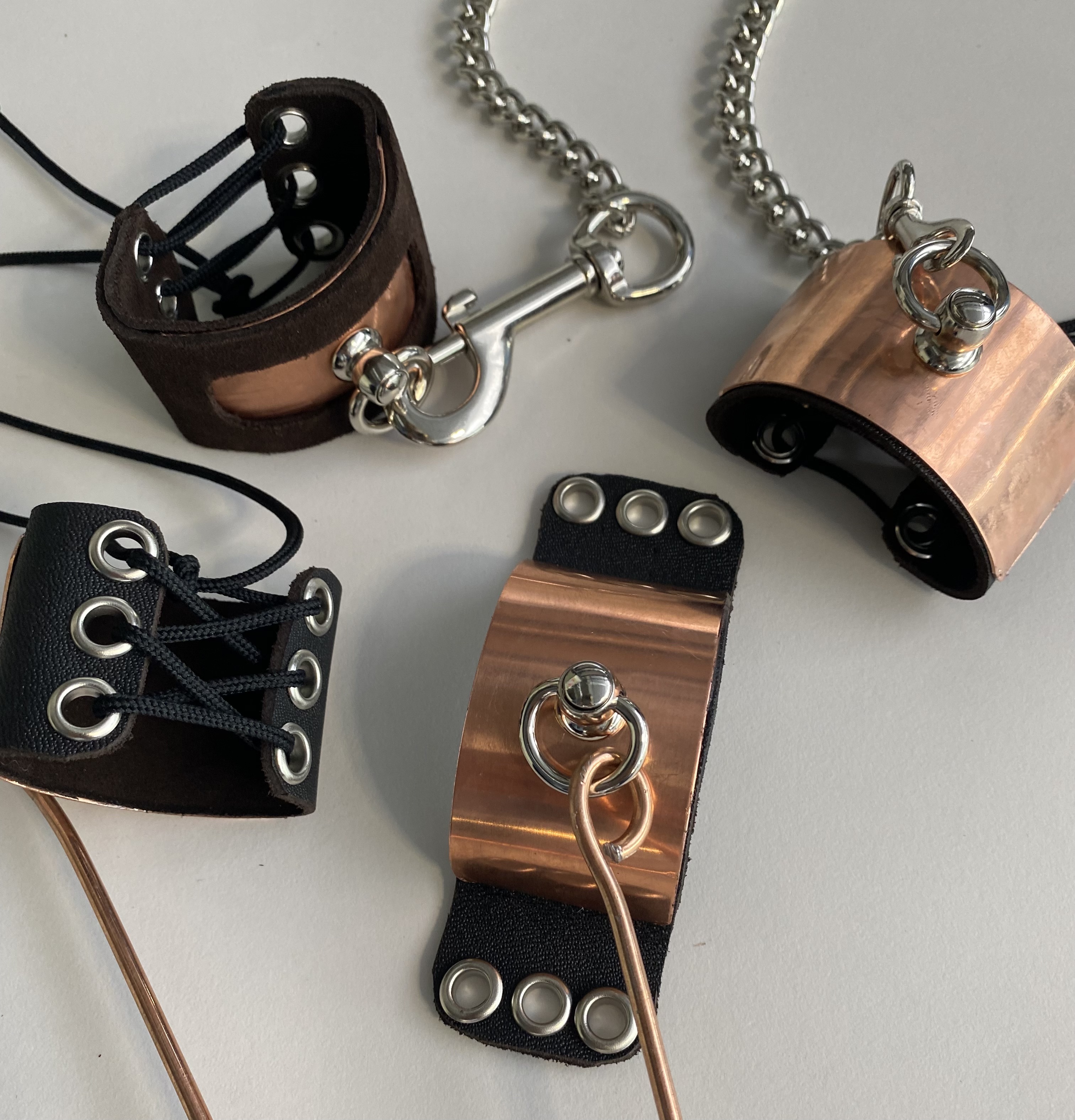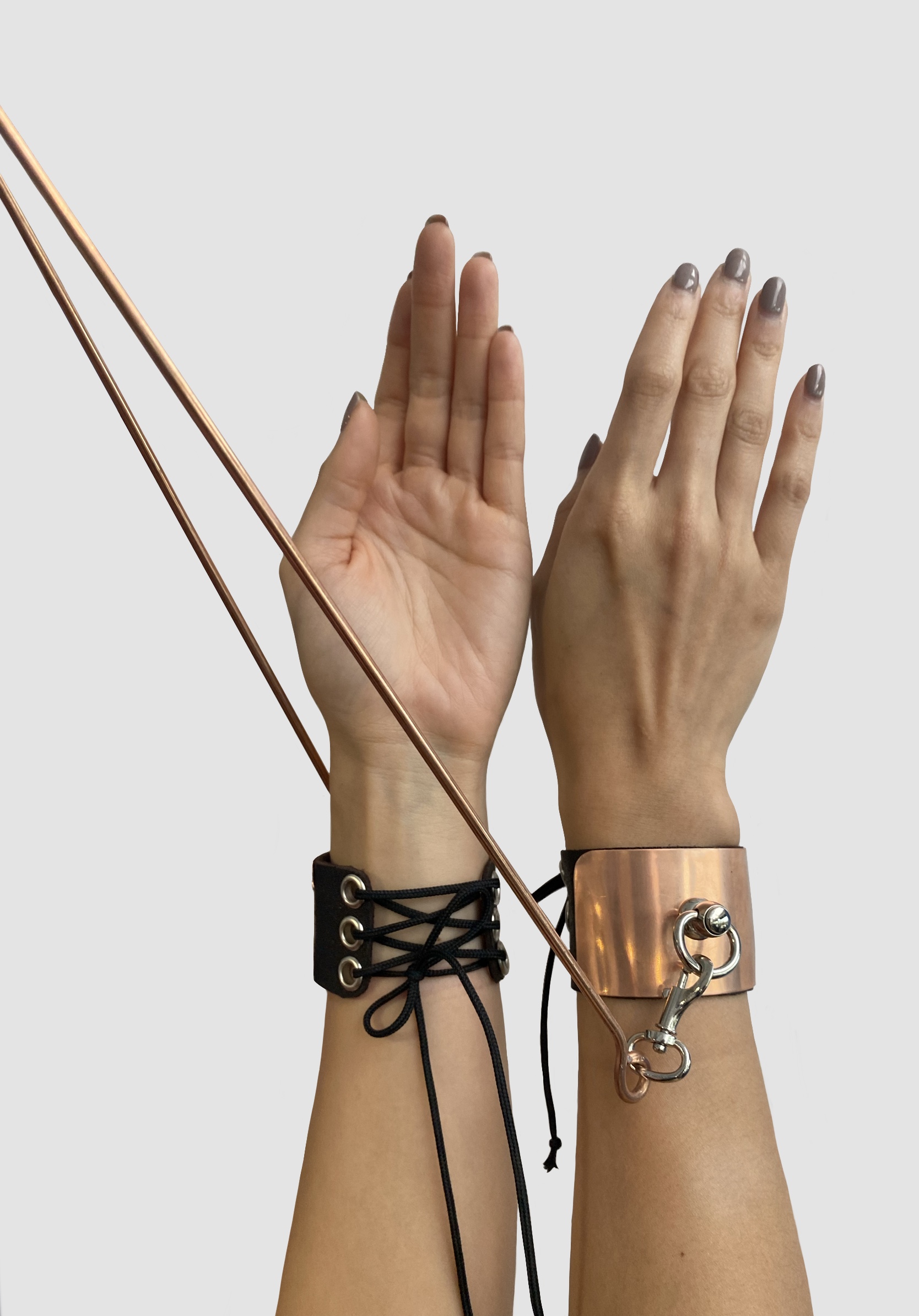 A series of cuffs desinged to connect partners to one another. This is an investigation into consent, communication of desires and guidance through an explorations of each others bodies mediated through objects.
