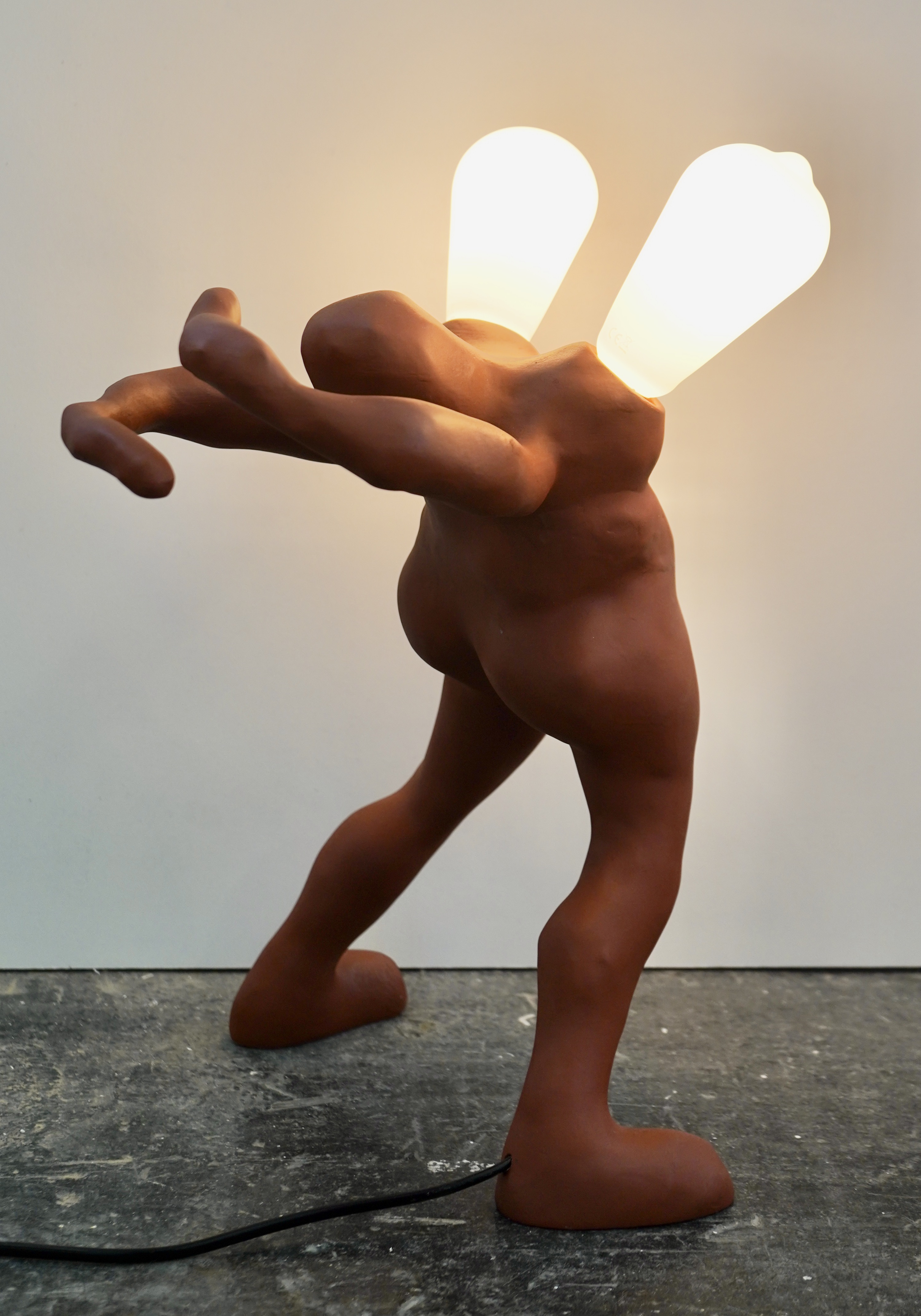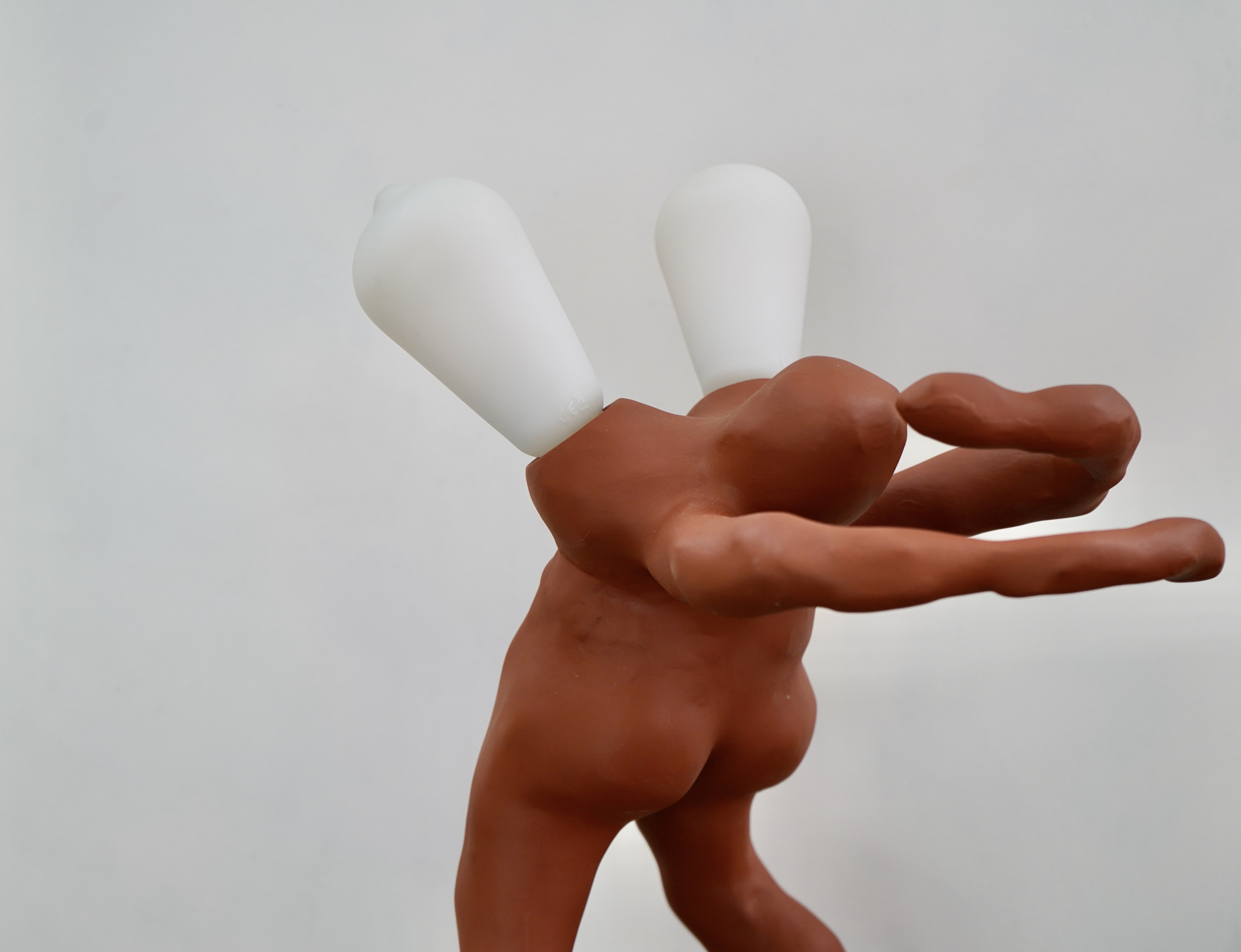 Process: hand sculpted figure, scanned and edited in CAD software, 3D printed, wired, assembled, finished and painted.